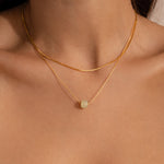 Inspired by the calming beauty of nature, our Jade Bead Necklace features a polished green gemstone that rests gently at the collarbone. Simple yet rich with meaning, it's a grounding piece for mindful moments and graceful layering.