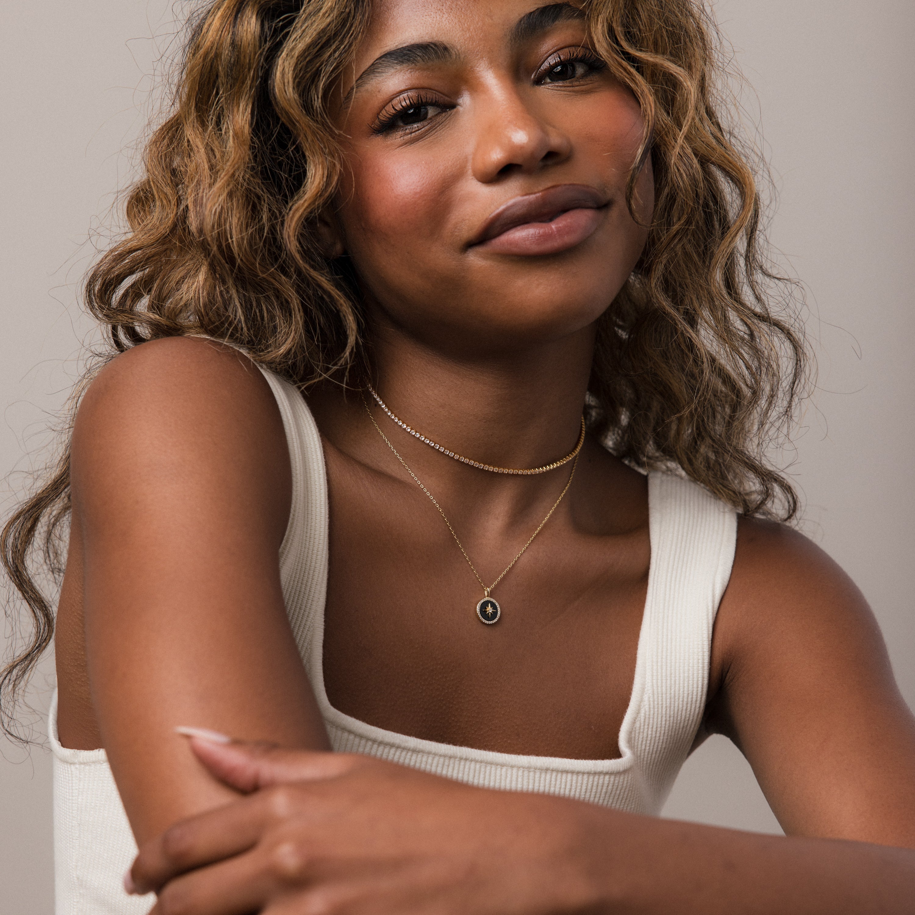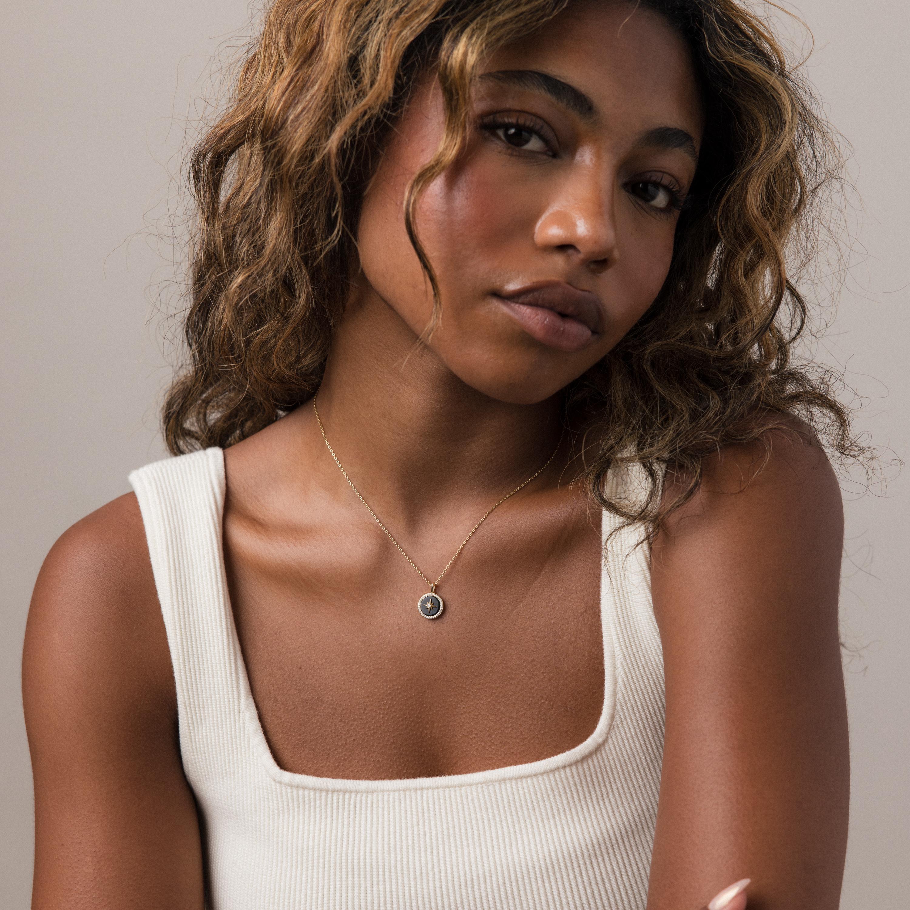 Sleek, celestial, and effortlessly modern, our Onyx Star Pendant Necklace features a bold black onyx center framed with a radiant star motif. A perfect blend of mystery and shine, designed for those who love a touch of cosmic elegance in their everyday style. A refined celestial statement, wear it solo for an eye catching focal point, or layer it with delicate chains to build a chic, star inspired stack.
