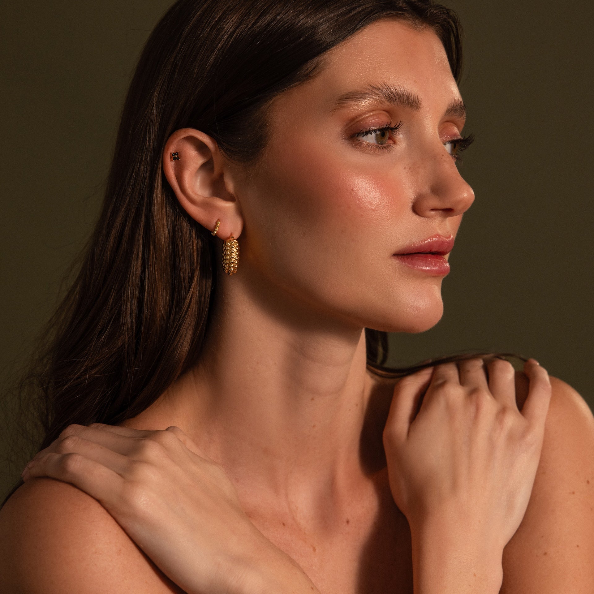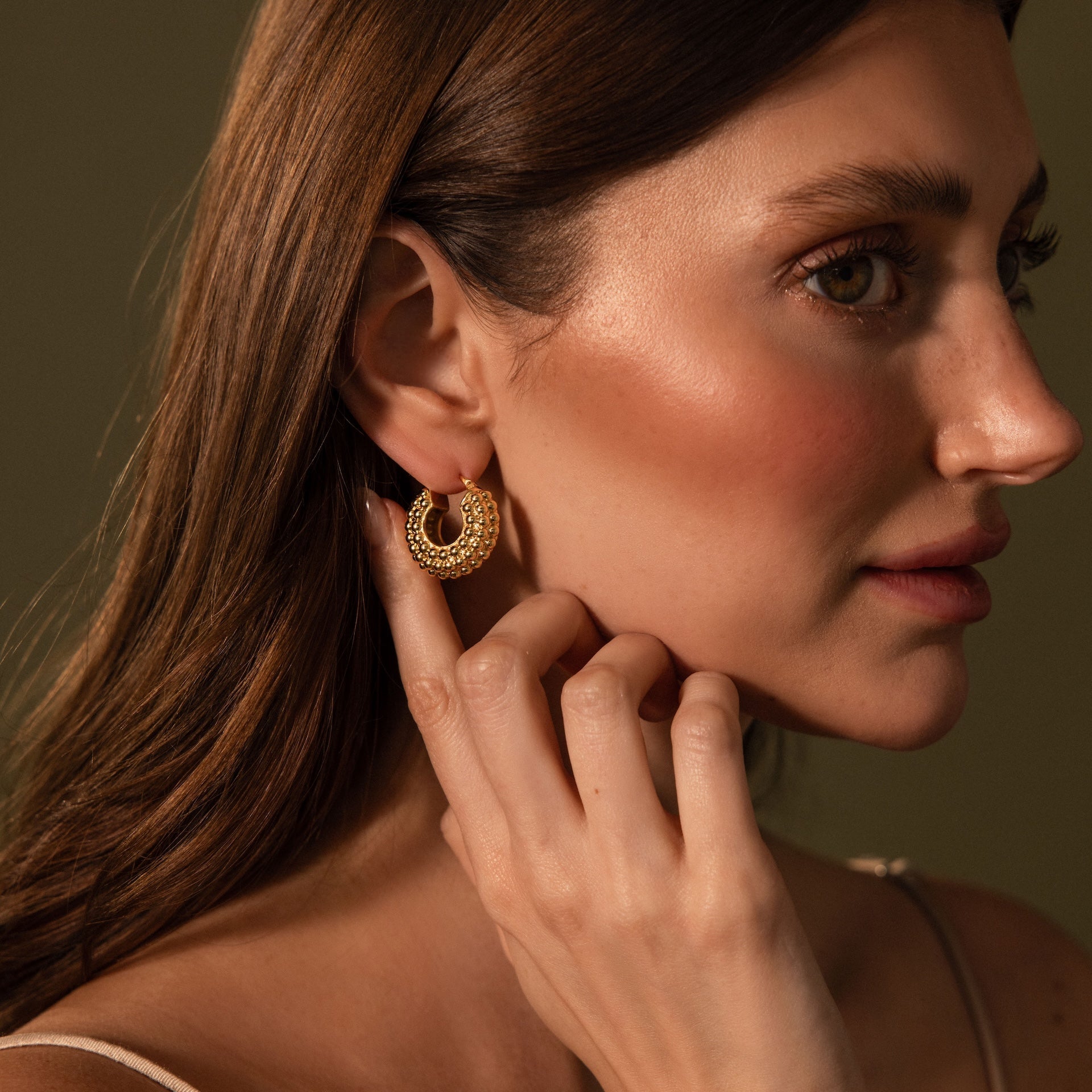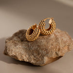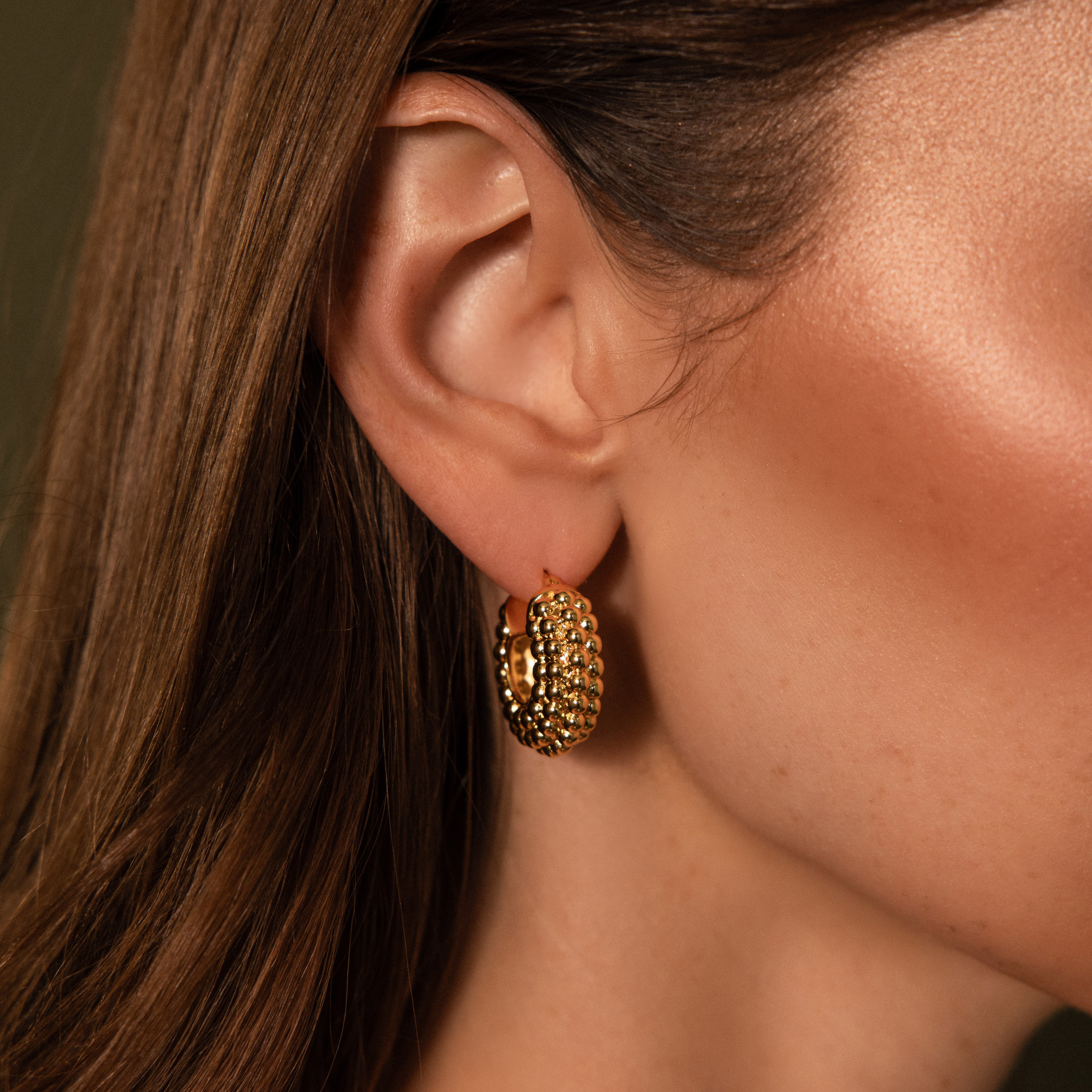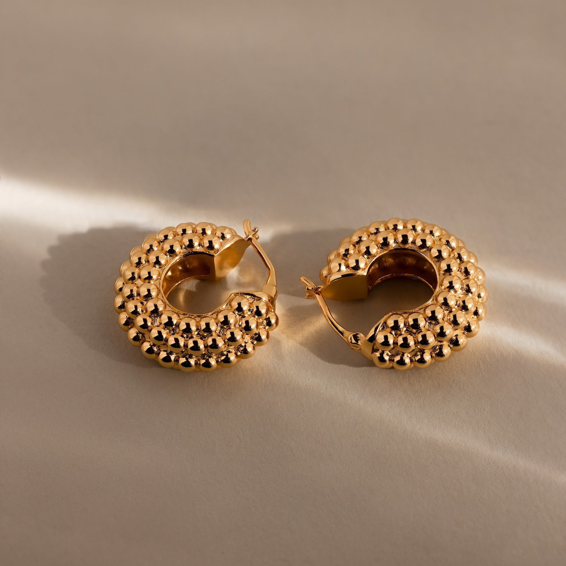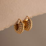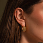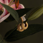 Our Beaded Dome Hoops feature a bold rounded silhouette with textured gold beading that feels sculptural and timeless. Designed to elevate everyday jewelry looks, these statement hoops pair effortlessly with vintage watches, mixed metals, and modern styling.