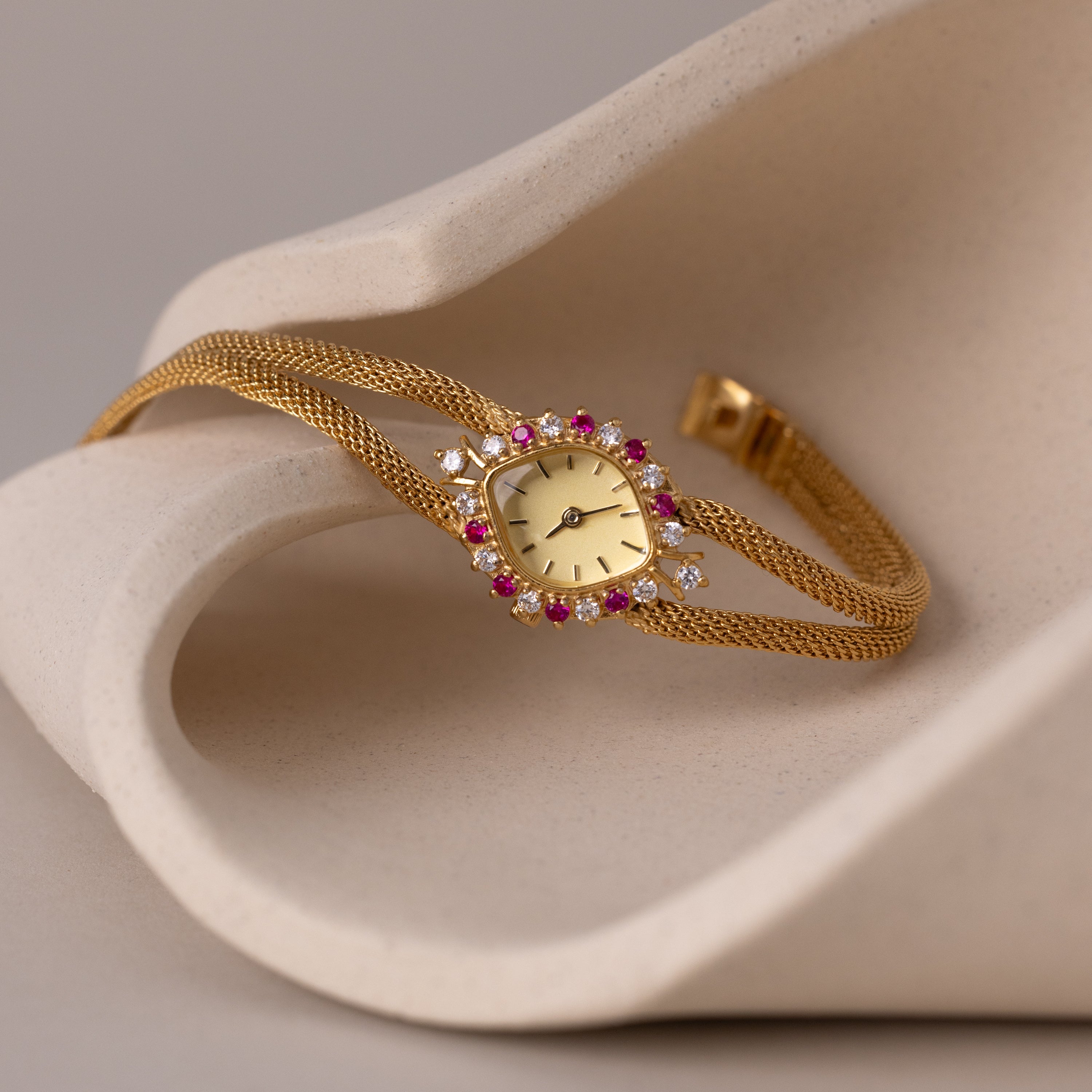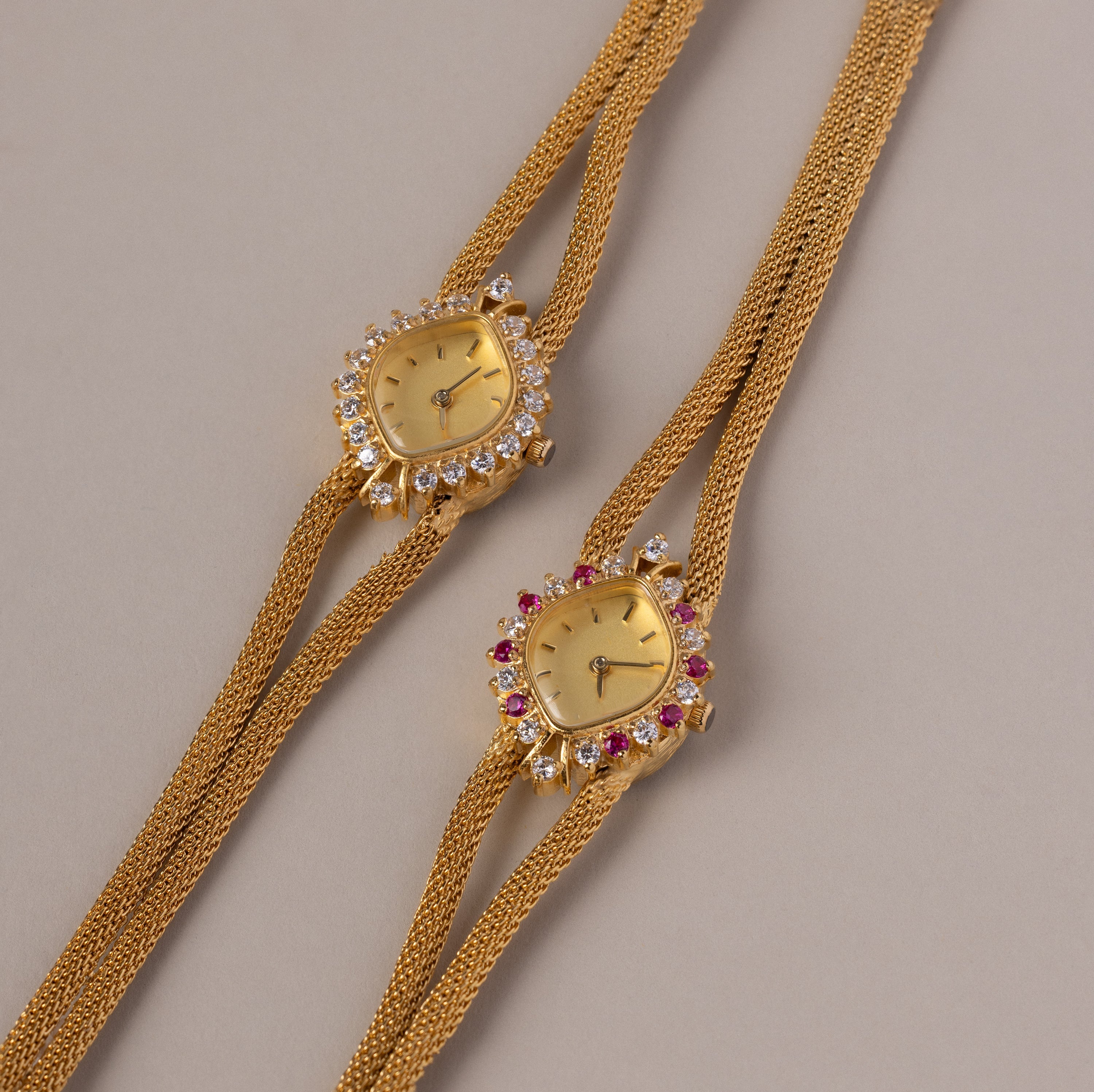 Designed with a slim mesh rope band and a diamond-shaped face dial framed by sparkly CZ stones, our Duo Chain Gemstone Timepiece delivers refined brilliance to everyday styling.