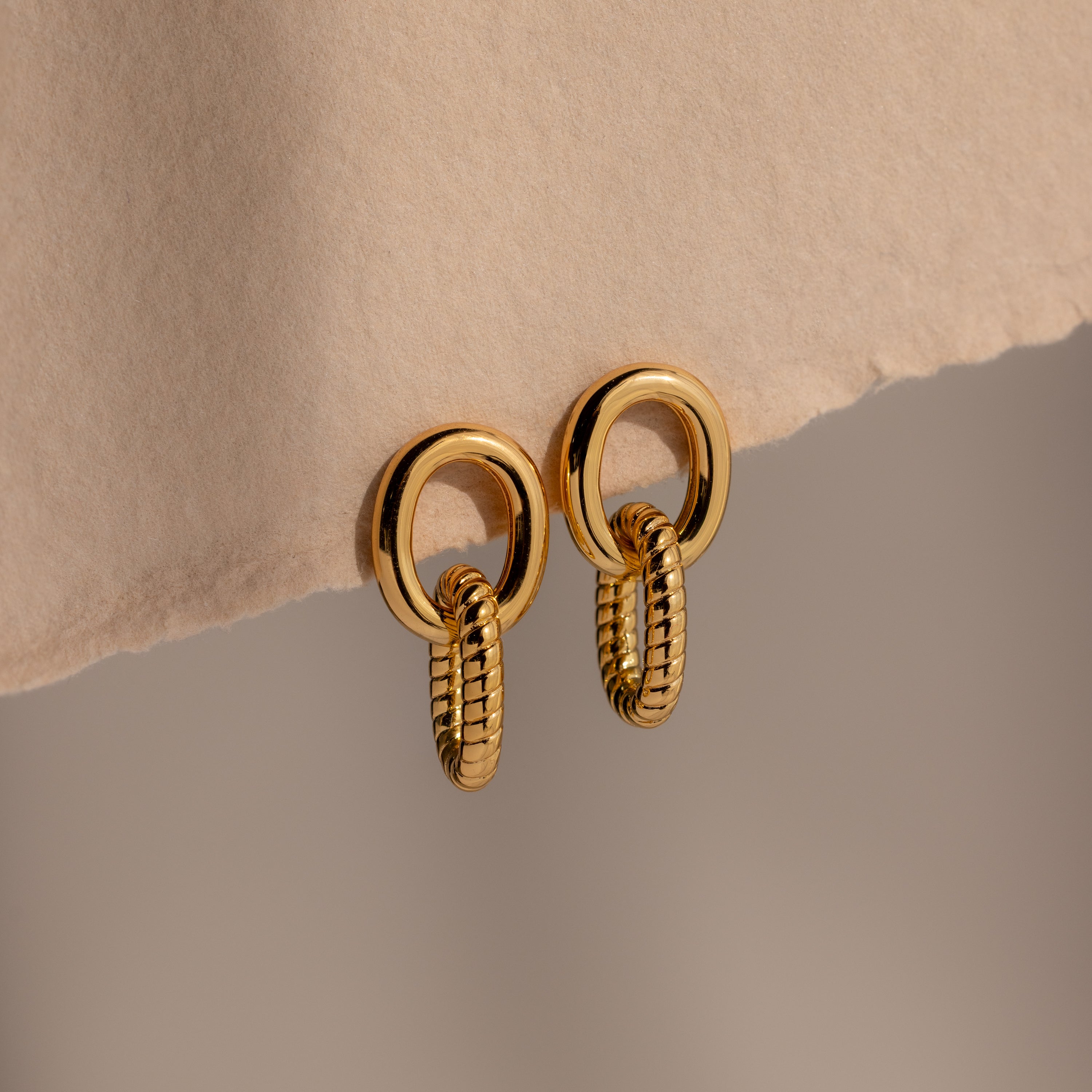 Teardrop Ribbon Charm Hoops in 18K Gold