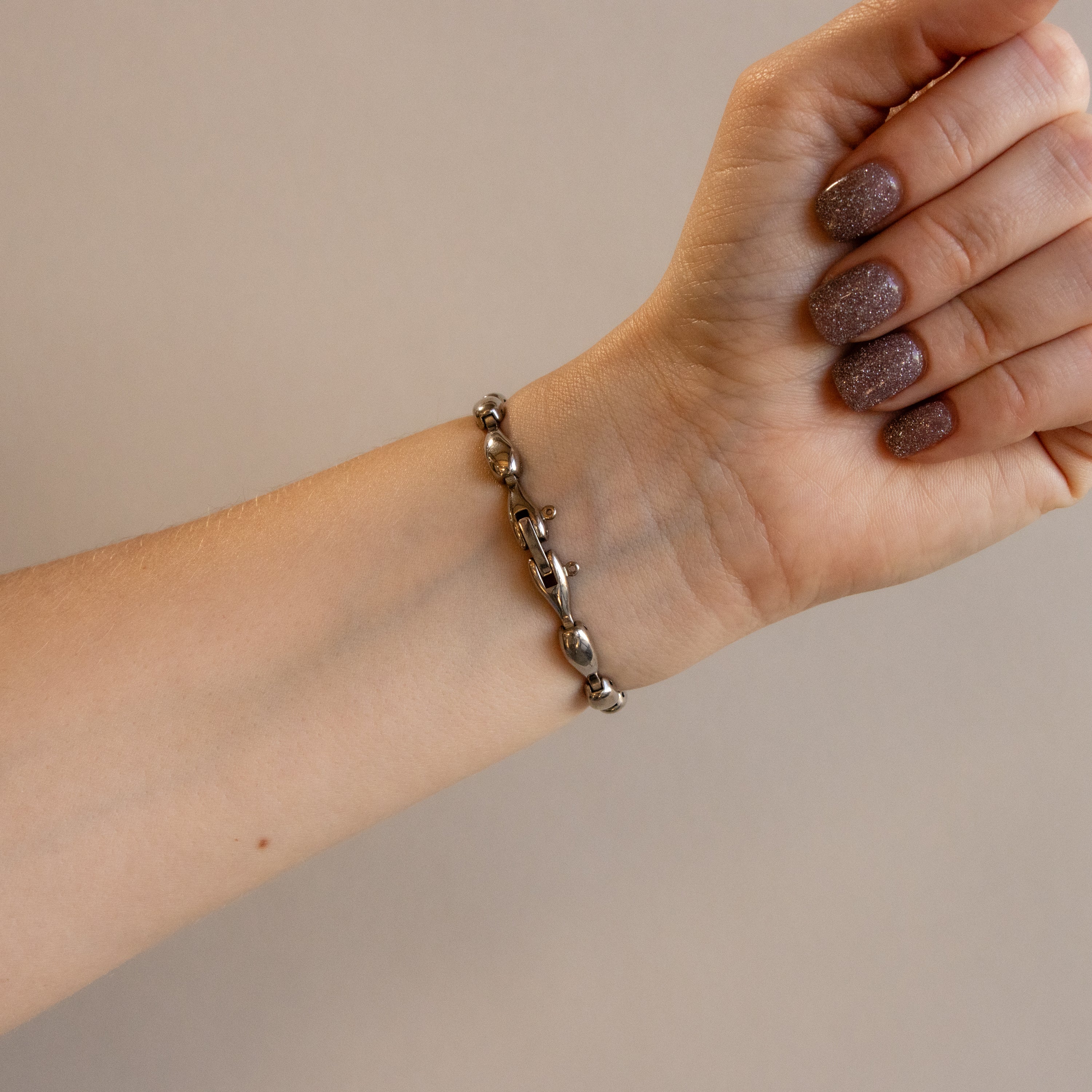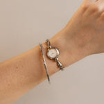 A study in understated glamour, this Vintage Citizen Opus Teardrop Silver Watch pairs a glowing blue white iridescent shimmer dial with a sleek, organic silver silhouette. The teardrop shaped links create graceful movement, making it feel like wearable art.