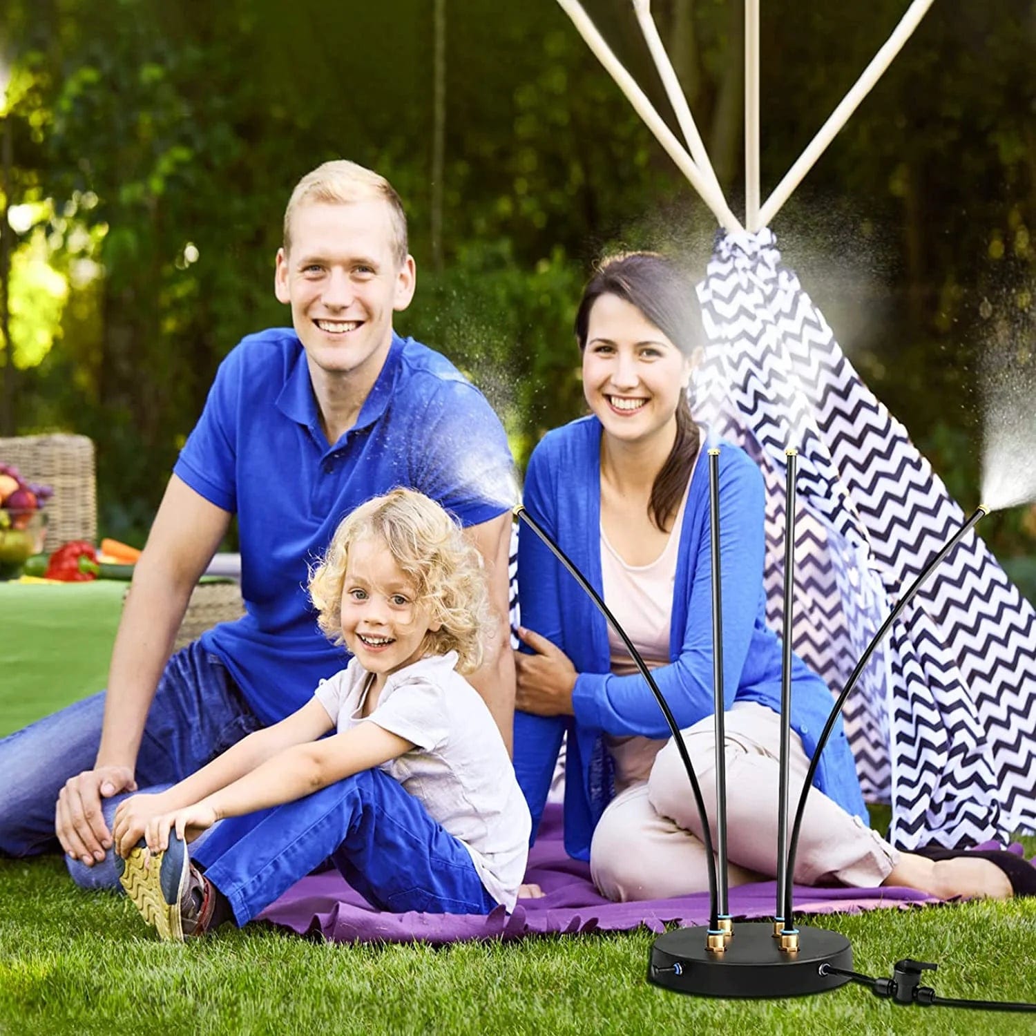 Efficiently Reduces Temperature: On hot summer days, the spray can lower 20-50°F (6-10°C) while not drenching the body as quickly as water. Mist can also cool pets, feed poultry, and water garden plants. The standing misting system gives you a cool breeze, which is a great experience on a hot summer day.